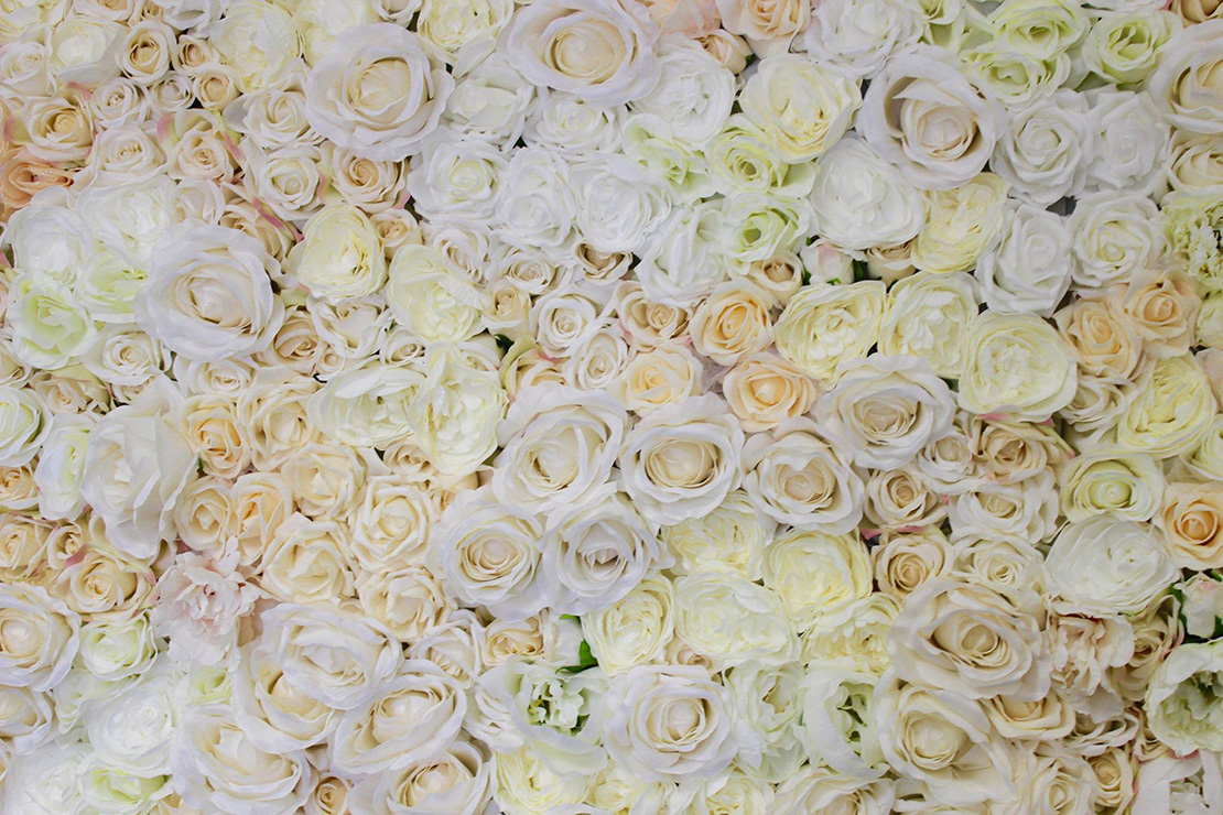 For a romantic background for a sweetheart table or photo booth consider our hand- made 6ft x 7ft flower wall of high quality silk roses, hydrangeas and peonies in cream, white and apricot.