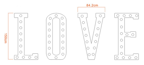 Spell out the mood of the day! Our 150cm tall illuminated LOVE sign in white LED bulbs, which is PAT tested.